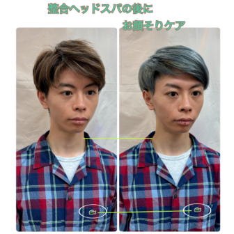 ↓同じ日に『整合ヘッドスパ⇒お顔そり』の順で施術致しました